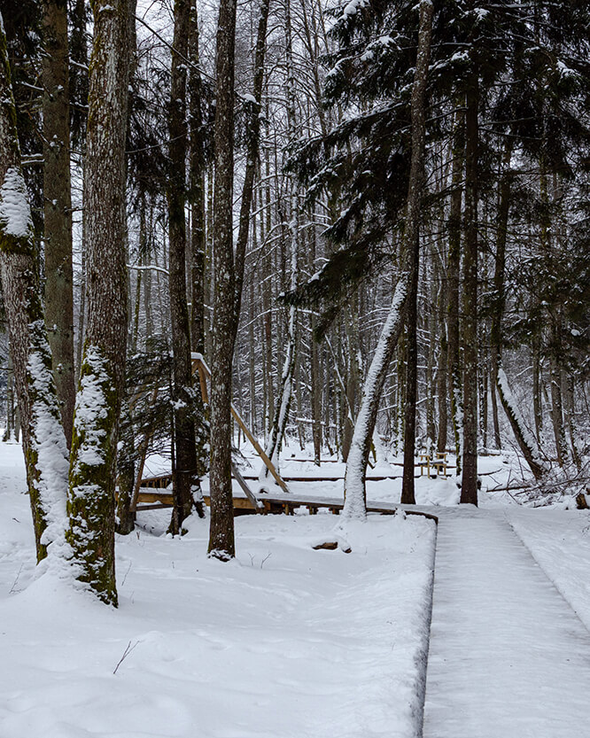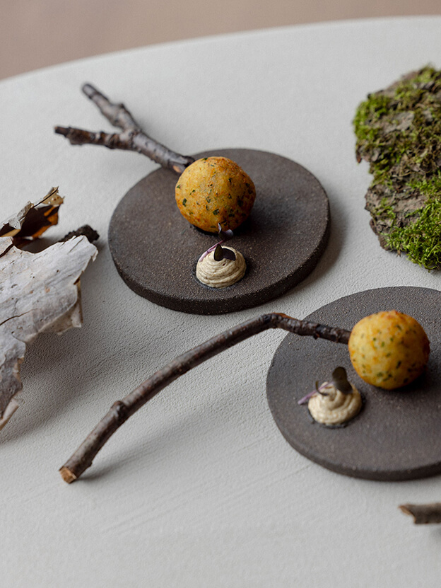 Čia brandinta vietinė elniena, laukinės miško žolelės, švieži ingredientai, užaugę vietinėje žemėje – visa tai susijungia į patiekalus, kurie alsuoja metų laikais, tyla ir giliais, atpažįstamais skoniais.
