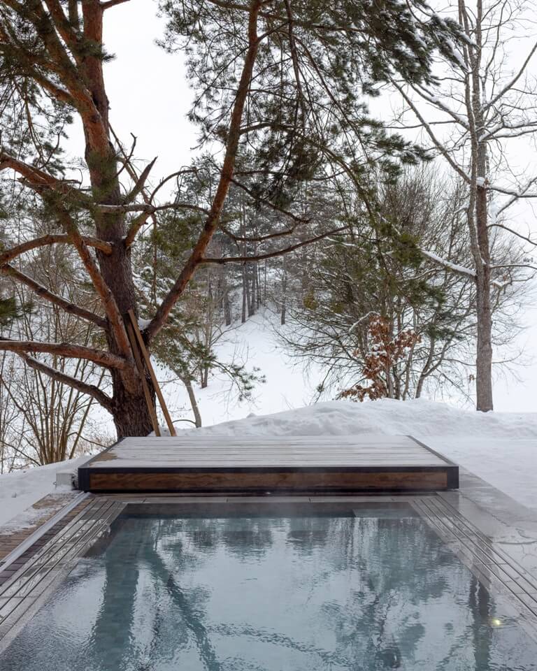 Nuo vidaus – į maudynes po atviru dangumi, kur vanduo susilieja su dangumi ir mišku, o tu – su savimi.